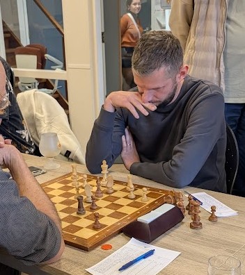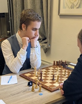 Floor Verschoor zat naast me aan bord 3 en kwam niet super uit de opening. In het middenspel kwam er zelfs koude lucht van het bord af. Wat bleek: beide spelers hadden meerdere stukken op de tocht gezet. Floor kreeg verschillende mogelijkheden bij het afruilen van deze stukken, maar zag zich uiteindelijk genoodzaakt een kwaliteit in te leveren om de stelling niet te laten klappen. Zijn tegenstander zette hierna sterke druk op Floors koning. Hier kon hij zich helaas niet meer onderuit schaken. Het eerste externe punt van Floor laat dus nog even op zich wachten, maar reken maar dat hij tot op het bot gebrand is deze zo snel mogelijk te verkrijgen! 2,5-1,5