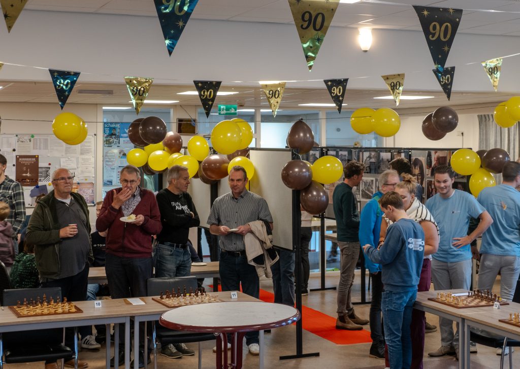 SLIEDRECHT – Afgelopen zaterdag 15 november heeft Schaakvereniging Sliedrecht groots gevierd dat het 90 jaar bestaat. ’s Middags traden grootmeester Dimitri Reinderman en Internationaal Meester Hing Ting Lai gelijktijdig aan tegen meerdere tegenstanders. Ook konden deelnemers schaakproblemen oplossen bij schaaktrainer Marijn den Hartog. ’s Avonds kwam na een ludieke presentatie het tweede jubileumboek van de vereniging uit. In totaal deden meer dan 125 deelnemers me aan het schaakfeest.