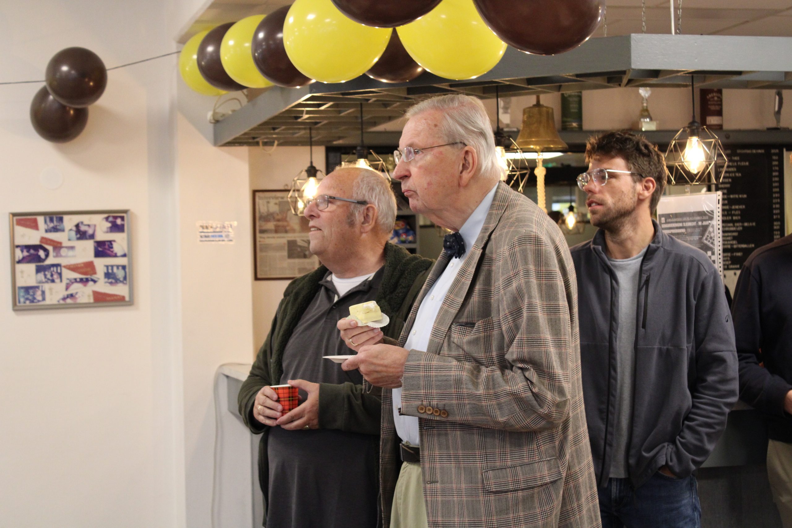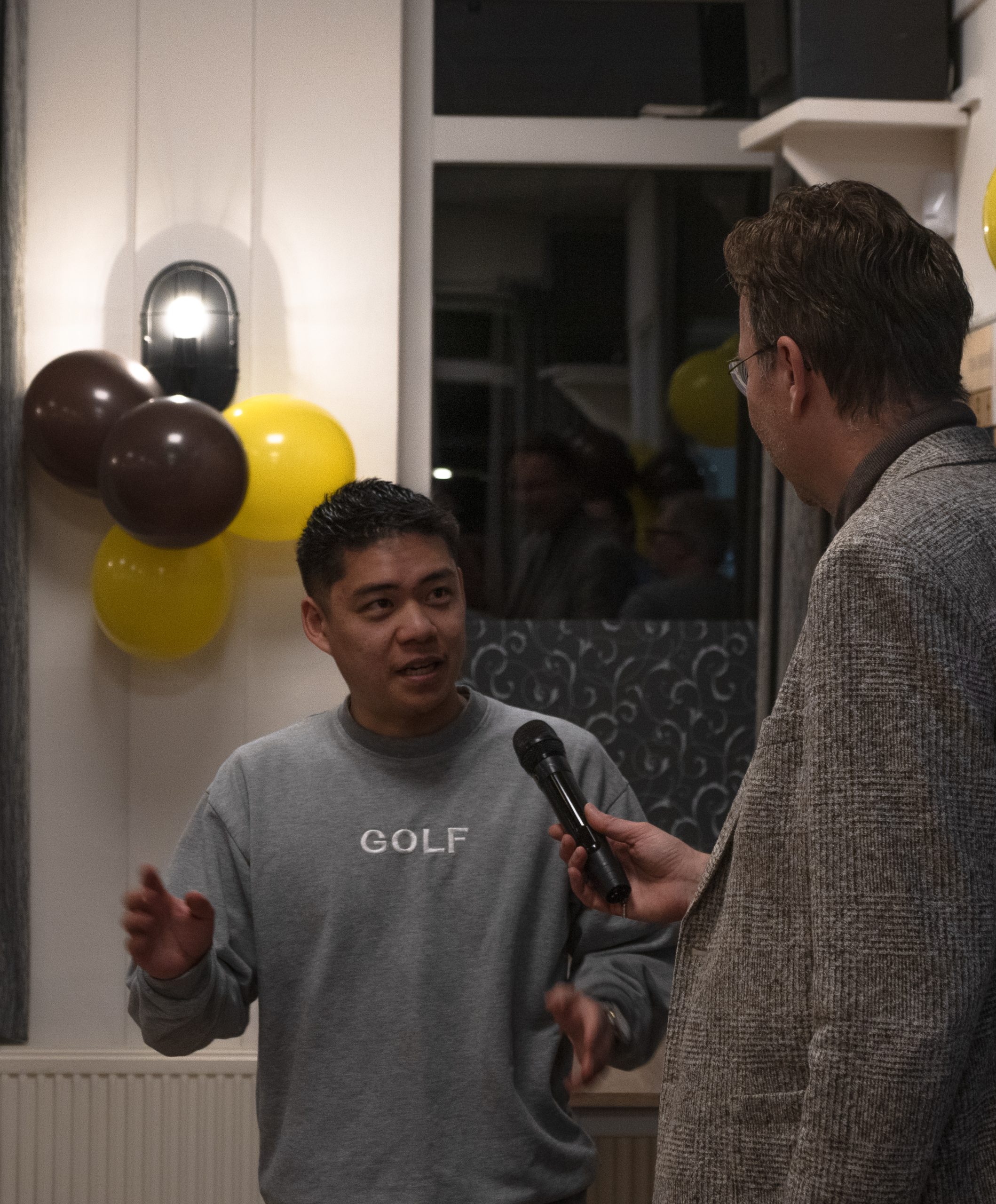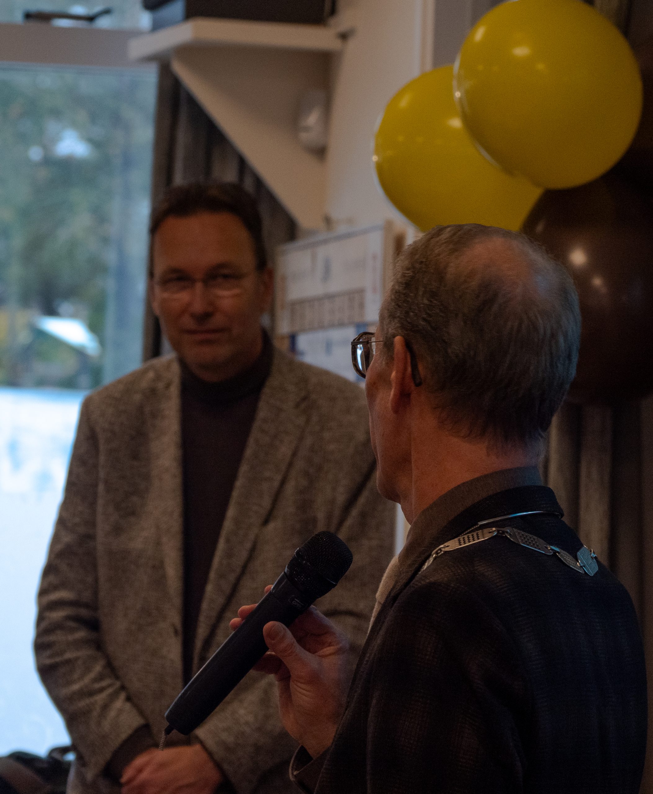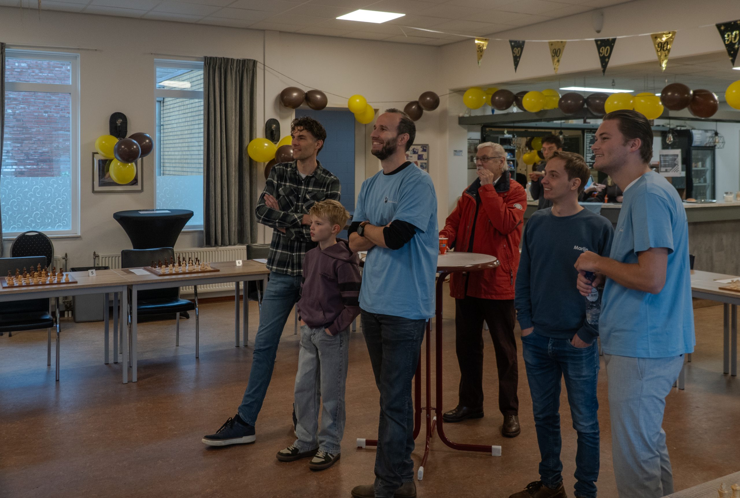 De erevoorzitter reikte het eerste exemplaar uit aan de huidige voorzitter, Marcel Klein. De laatste kan terugkijken op een groot schaakfeest met heel veel leden en schaakvrienden.