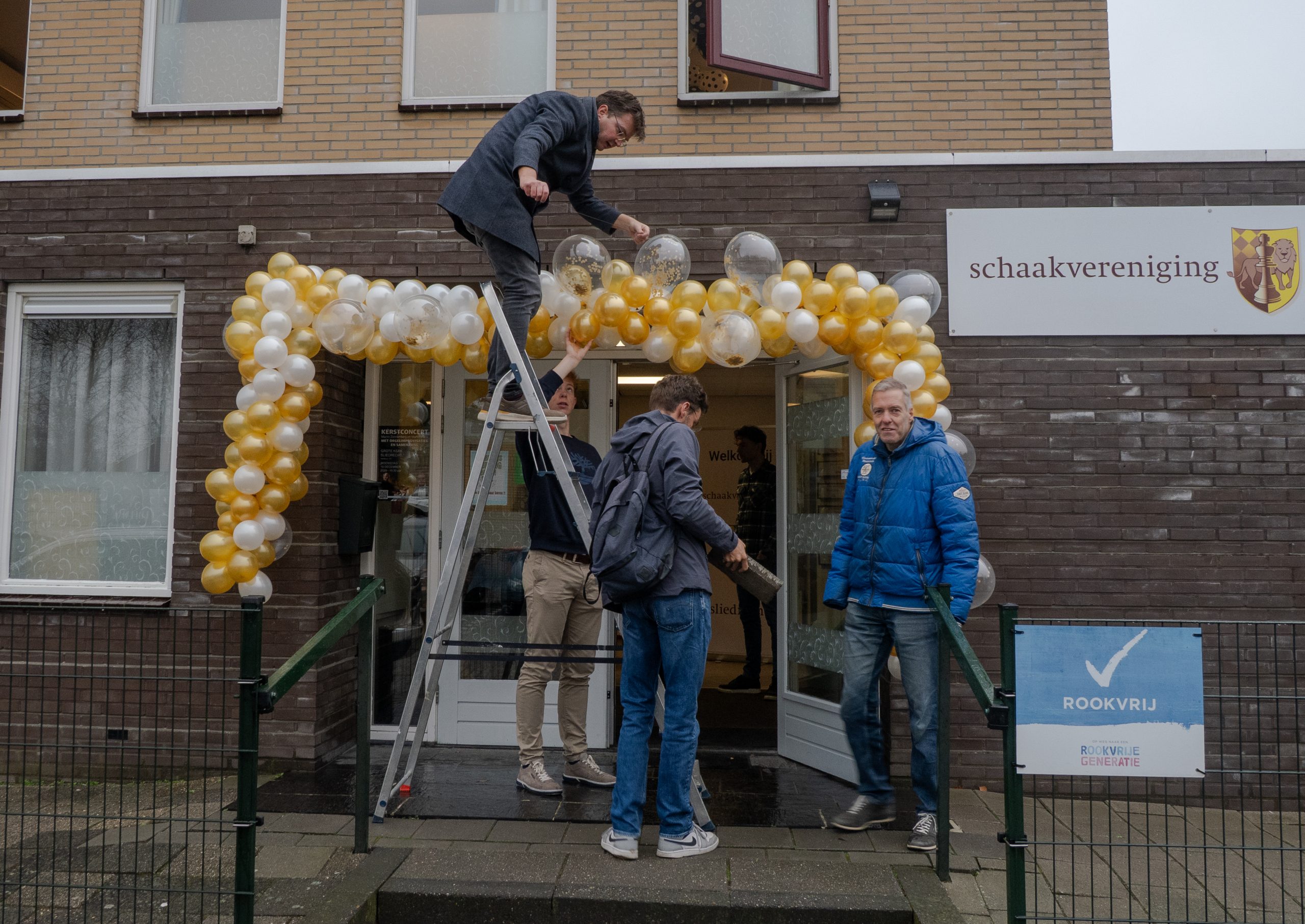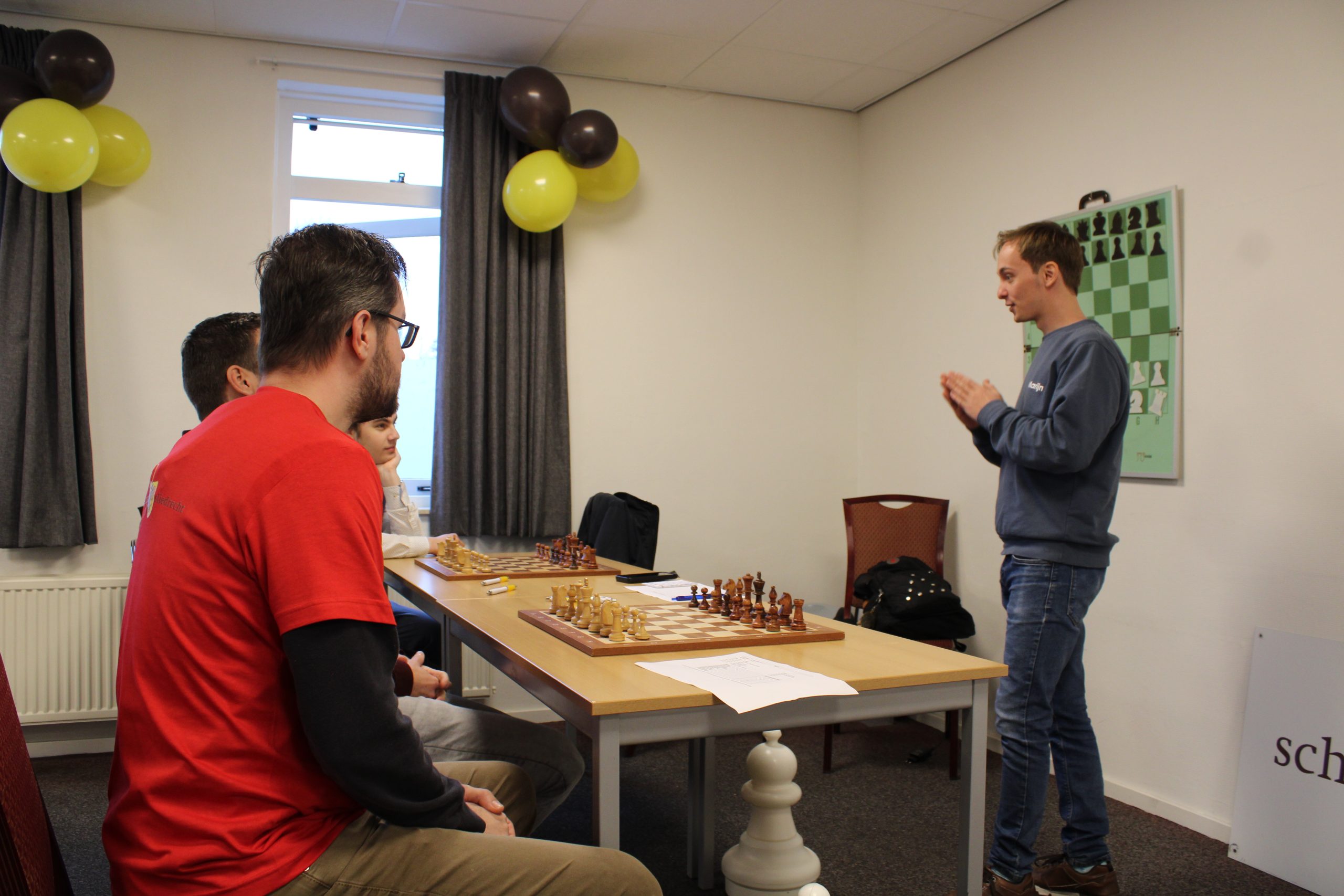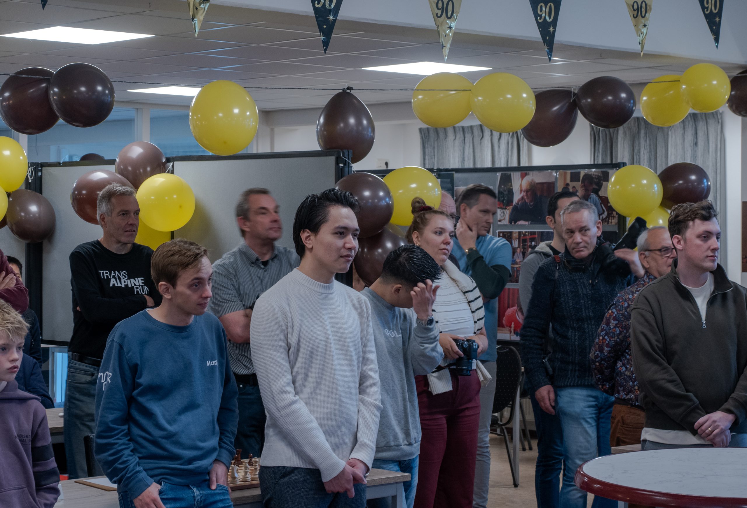 SLIEDRECHT – Afgelopen zaterdag 15 november heeft Schaakvereniging Sliedrecht groots gevierd dat het 90 jaar bestaat. ’s Middags traden grootmeester Dimitri Reinderman en Internationaal Meester Hing Ting Lai gelijktijdig aan tegen meerdere tegenstanders. Ook konden deelnemers schaakproblemen oplossen bij schaaktrainer Marijn den Hartog. ’s Avonds kwam na een ludieke presentatie het tweede jubileumboek van de vereniging uit. In totaal deden meer dan 125 deelnemers me aan het schaakfeest.