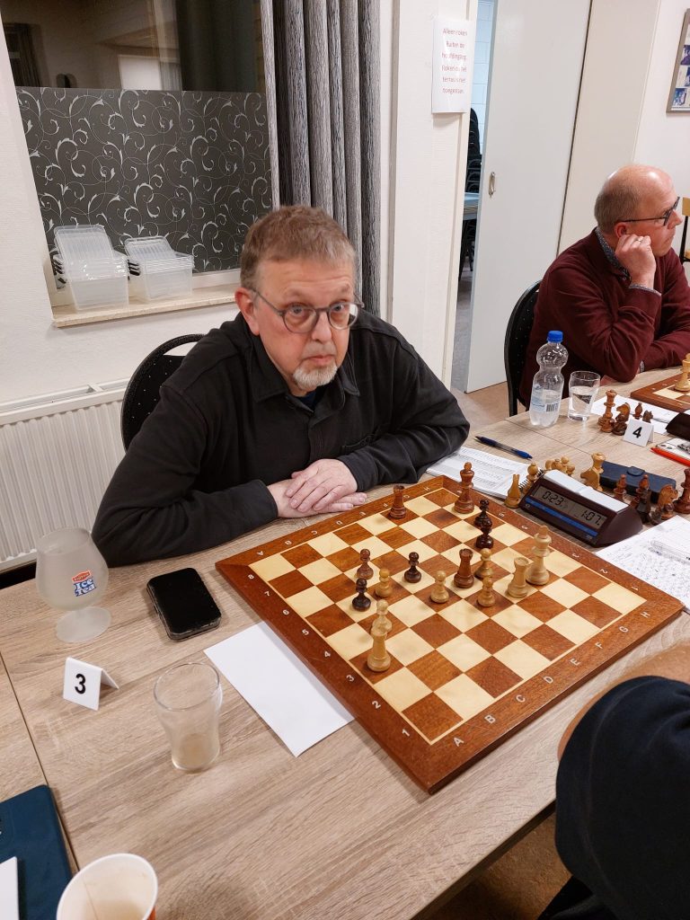 Aan bord 1 zag Arco van Houwelingen met de zwarte stukken dubbel. Hij tuurde eens over zijn dikke brillenglazen, wreef zijn oogjes nog eens goed schoon… Warempel.. deze tegenstander heeft hij een korte maand geleden ook al gehad in de RSB competitie (8-tal). Dubbel feest dus… tenminste… een dubbele kans om nu wél te winnen. Snel werd er gebladerd in het boekje naar eerdere wedstrijden, maar tevergeefs. Toen was de kleur precies omgedraaid. Dan maar gewoon een puike wedstrijd spelen op naar een overwinning die dubbel telt!