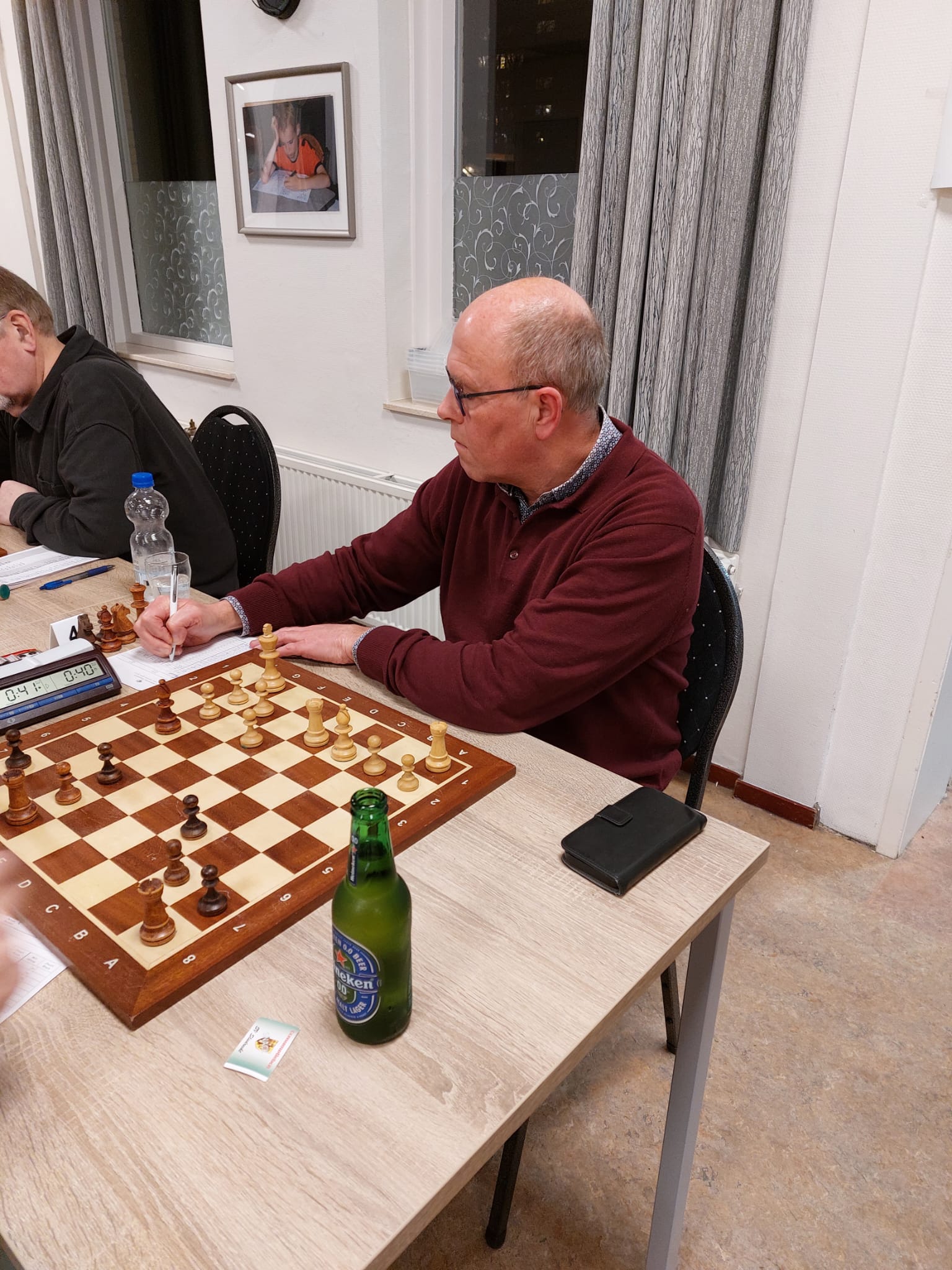 Aan bord 1 zag Arco van Houwelingen met de zwarte stukken dubbel. Hij tuurde eens over zijn dikke brillenglazen, wreef zijn oogjes nog eens goed schoon… Warempel.. deze tegenstander heeft hij een korte maand geleden ook al gehad in de RSB competitie (8-tal). Dubbel feest dus… tenminste… een dubbele kans om nu wél te winnen. Snel werd er gebladerd in het boekje naar eerdere wedstrijden, maar tevergeefs. Toen was de kleur precies omgedraaid. Dan maar gewoon een puike wedstrijd spelen op naar een overwinning die dubbel telt!