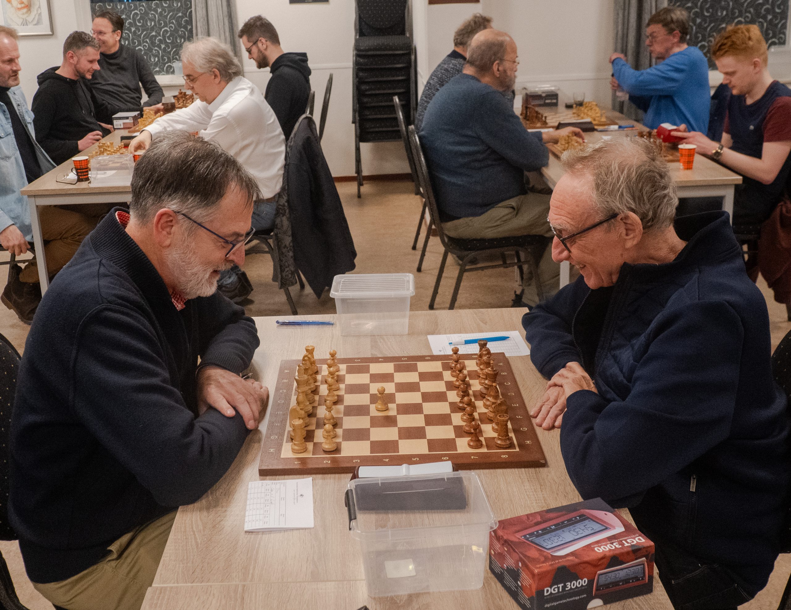 Tim Schakel heeft de weg naar een goede vorm gevonden. Na een ingewikkelde partij tegen Wout Boer pakte hij eindelijk weer eens een vol punt. Zoon Tijmen zag zijn opening tegen Johan van de Griend de mist ingaan, maar knokte zich terug naar een betere stelling, die uiteindelijk wel in remise verzandde.