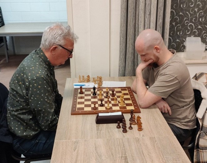 Joost Stoker trof met Niels Mijnster een pittige tegenstander. Joost kwam een pion achter en Niels wist dit voordeel zorgvuldig uit te bouwen tot winst.