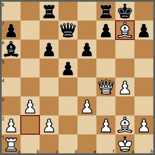 De man in vorm – Teunis den Rooijen – plast niet tijdens een partij en dat leverde veel tijdwinst op en ook nog eens een pion. In de volgende stelling won hij ook nog eens een kwaliteit. Tijd voor de tegenstander om het kleine kamertje op te zoeken…
